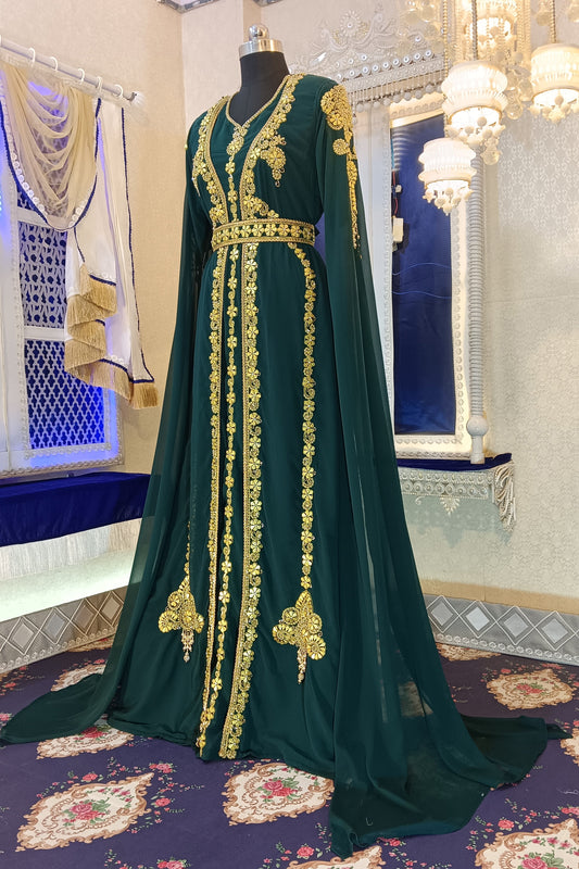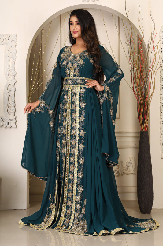 DarkGrey and BottleGreen Islamic Wedding Moroccan Kaftan