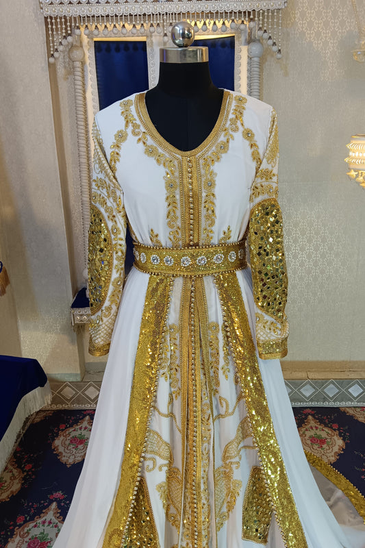 White Unique Designe Wedding Arabic Maxi Takchita Kaftan