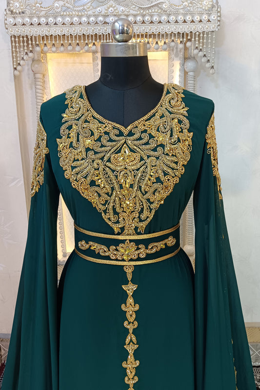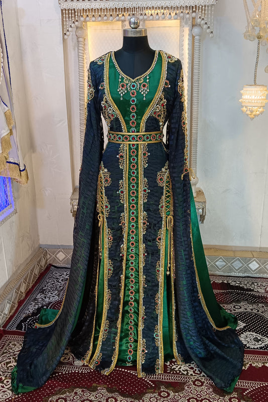 DarkGrey and BottleGreen Islamic Wedding Moroccan Kaftan