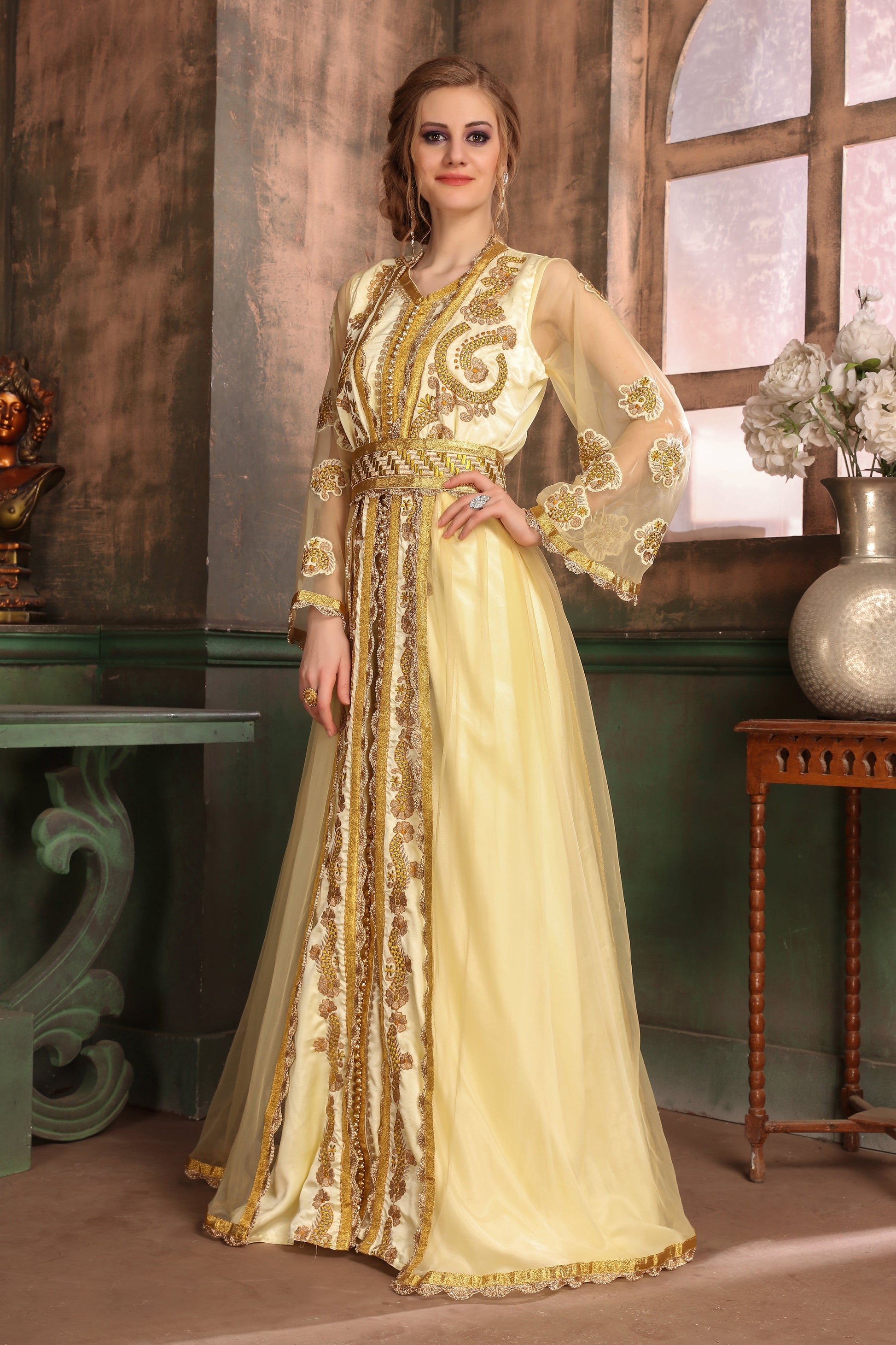Beige Color Moroccan Style Kaftan