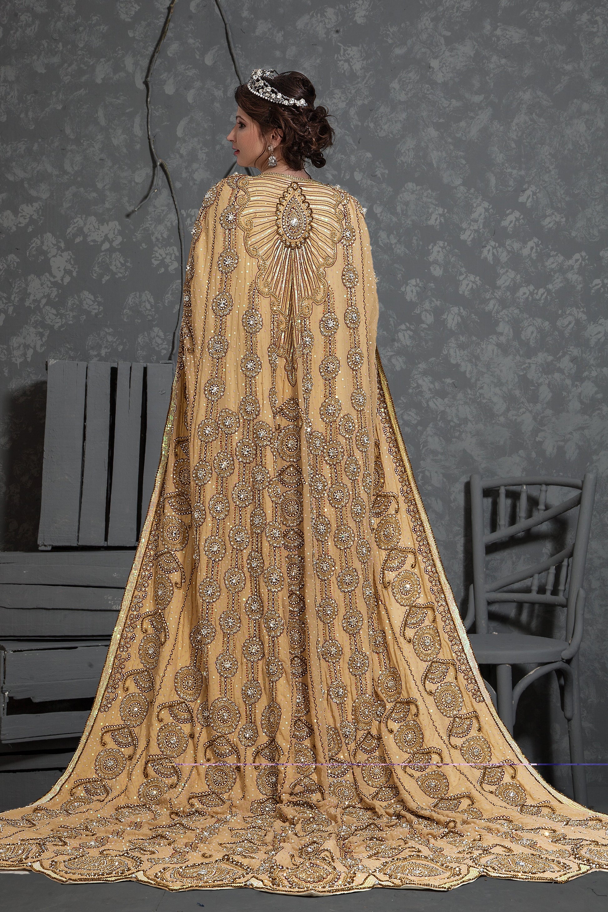 Beige Color Wedding Designer Moroccan Kaftan With Vail