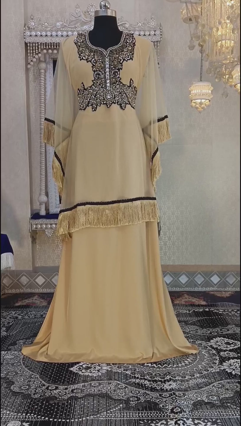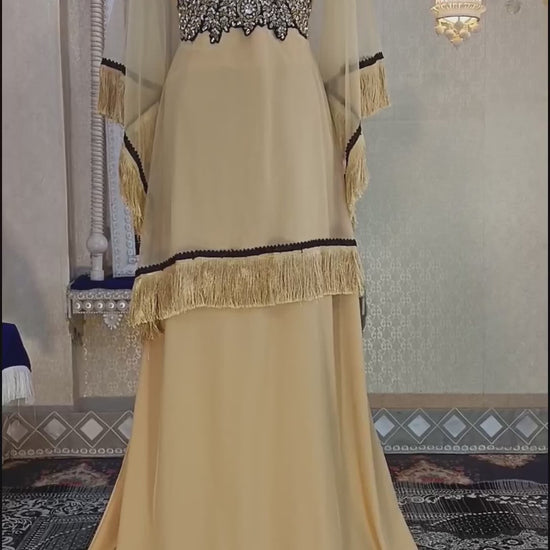 Beige Designer Islamic Party Wear Arabic Wedding Takchita Kaftan