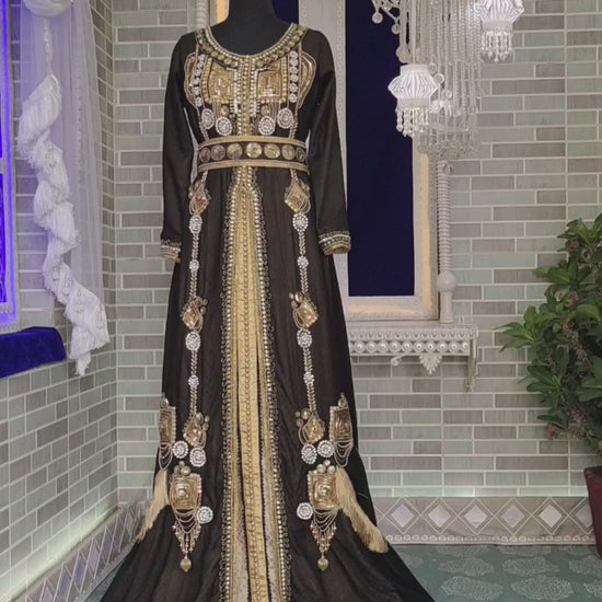 Black And Beige Designer Moroccan Wedding Kaftan