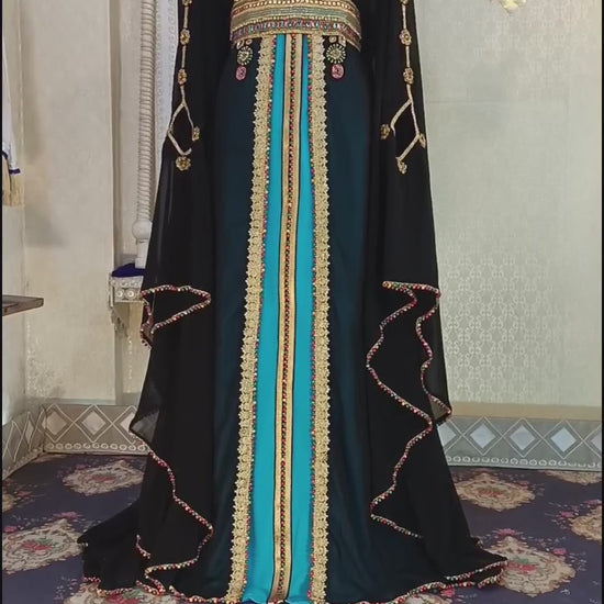 Black and Firozi Wedding Designer Arabic Moroccan Caftan