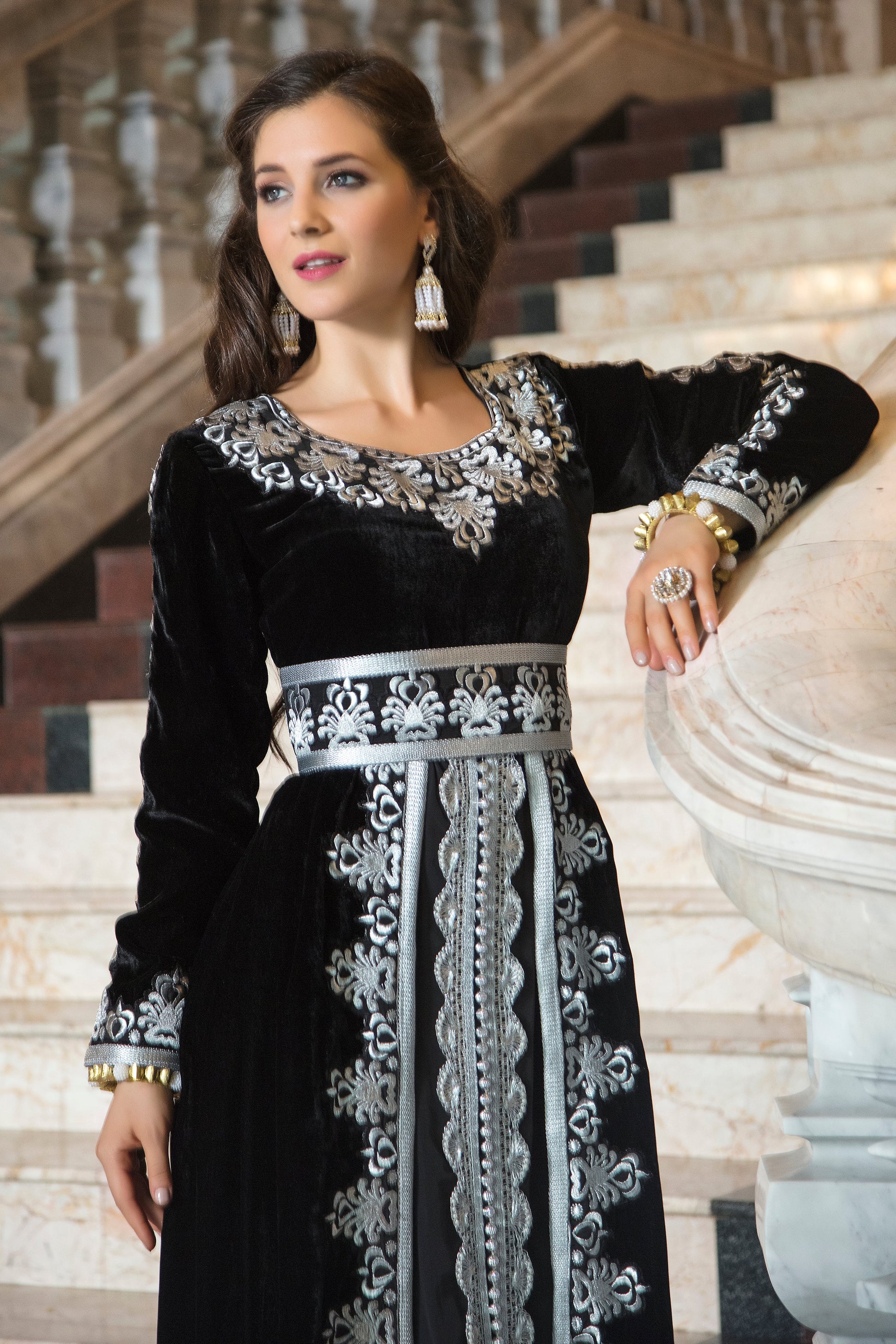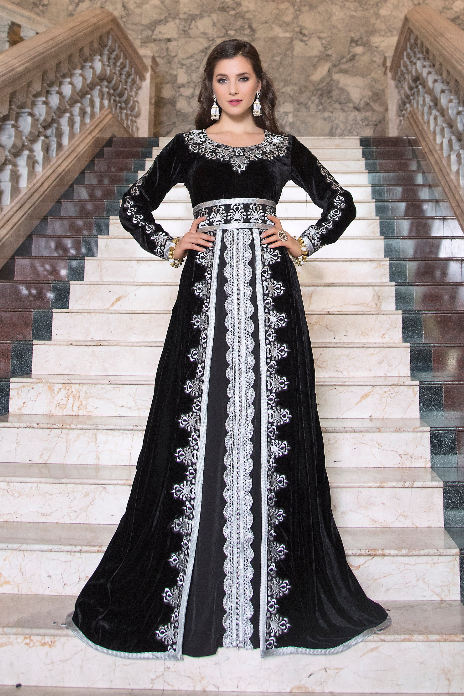 Valvet Black Color Arabic Takchita Kaftan