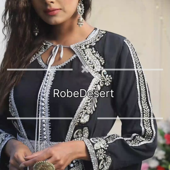 Dark Grey and Black Designer Embroidery Moroccan Dress Islamic Takchita Wedding Gown Israeli Party Wear Maxi Kaftan