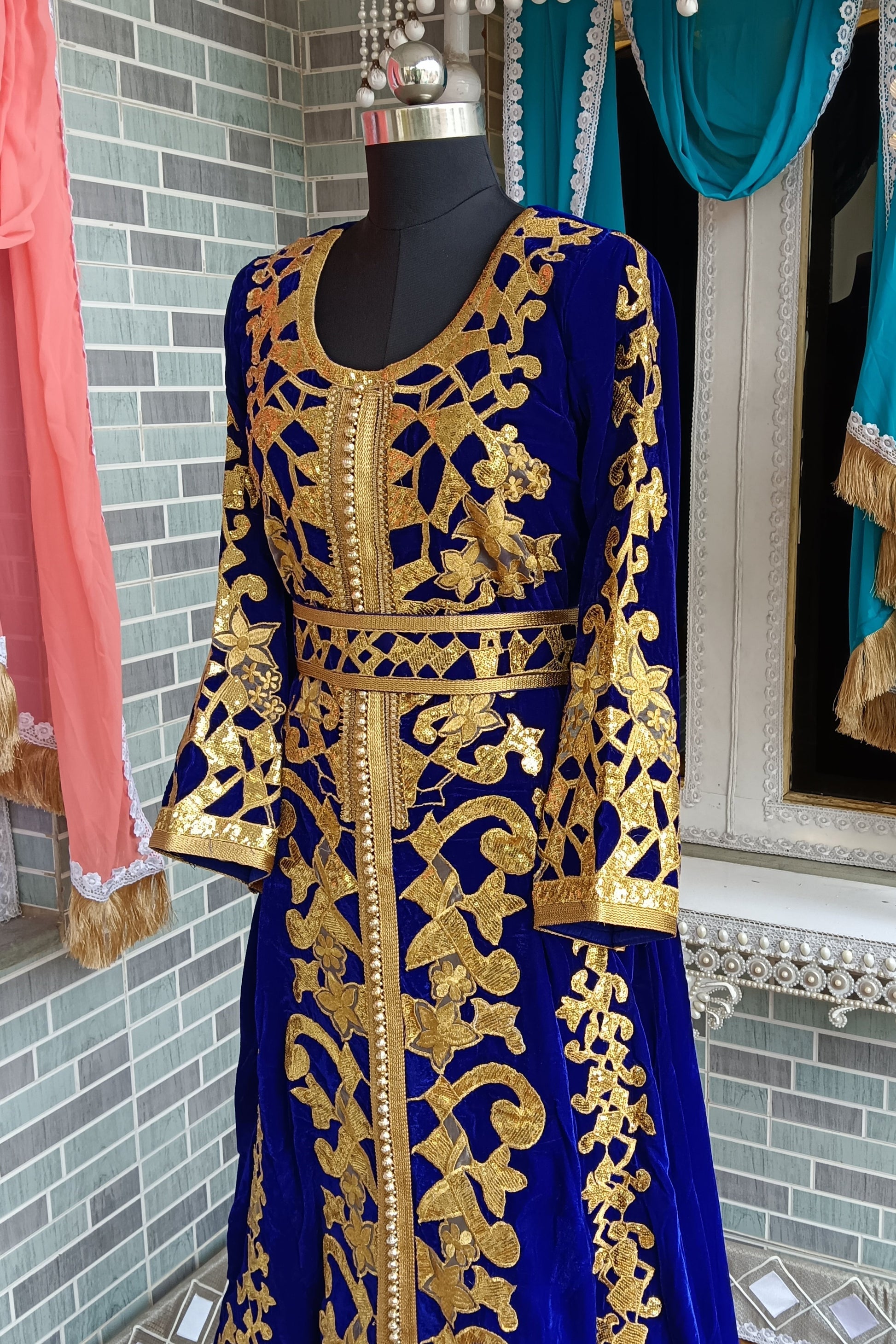 Blue and Gold Velvet Moroccan Israelite Takchita Kaftan