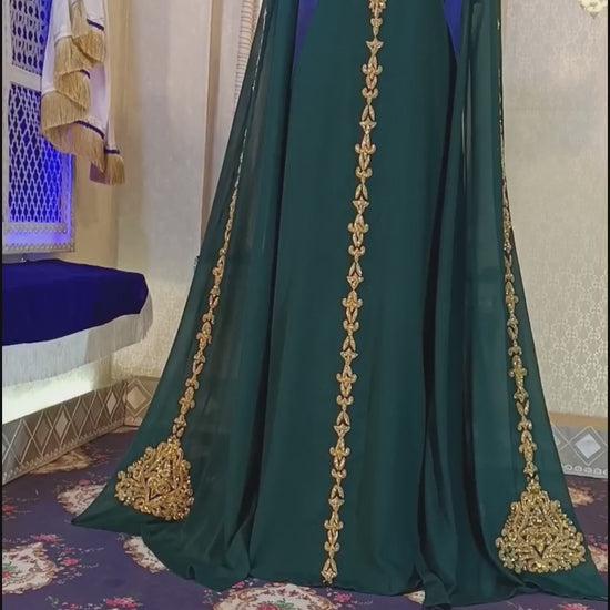 Bottle Green Wedding Arabic Long Sleeve Moroccan Kaftan