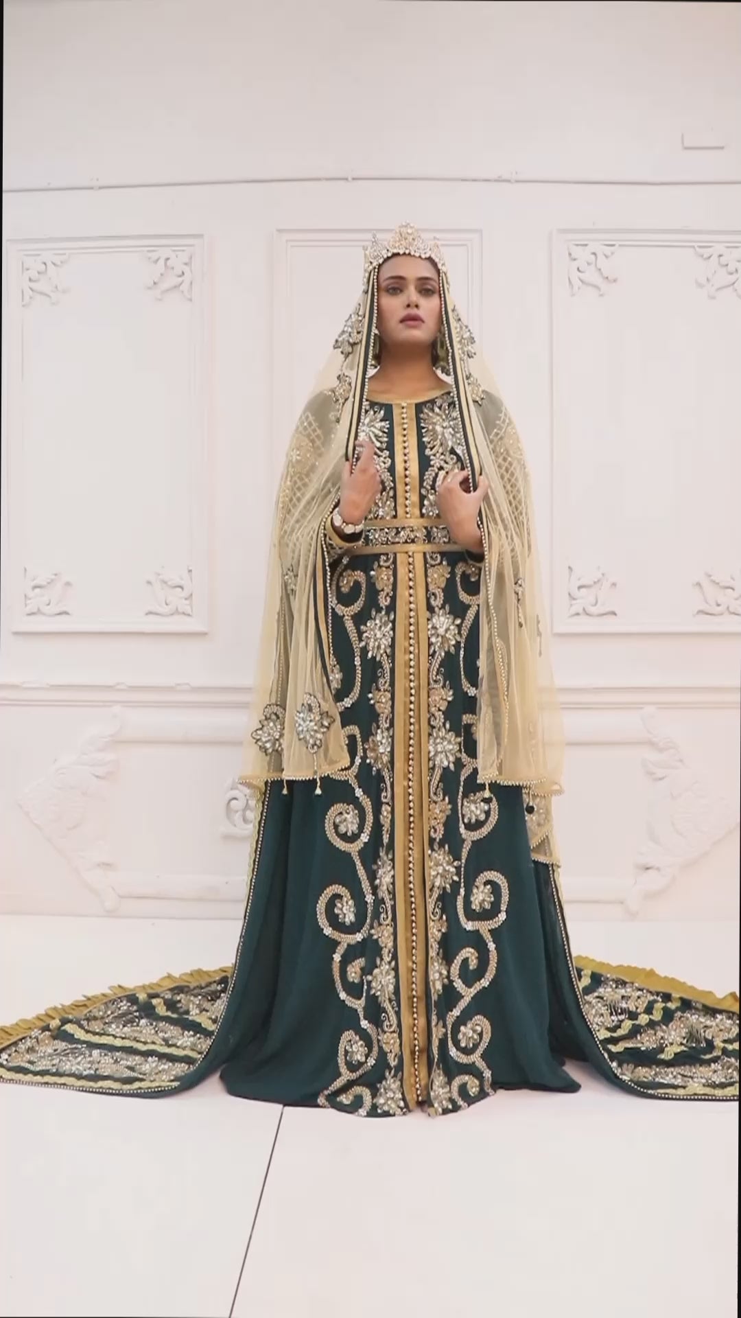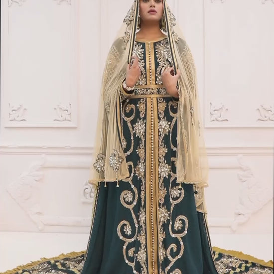 Bottle Green Good Looking Wedding Hand Beaded Stunning & Eye catching Long Sleeve Maxi Arabic Moroccan Islamic Designer Takchita Kaftan