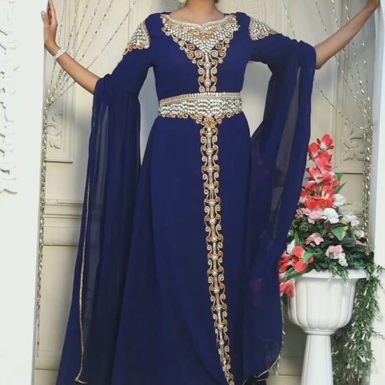 Dark Blue Islamic Moroccan Wedding Kaftan