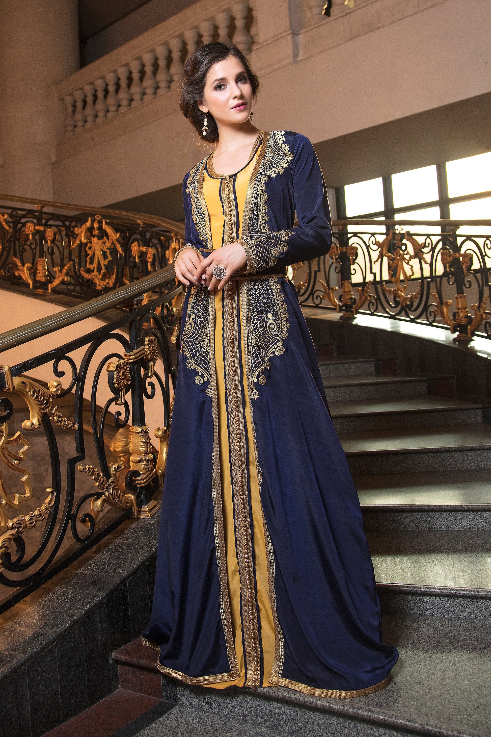 This Dark Blue Party Wear Designer Kaftan is the perfect piece for your next special event. The deep blue color gives it a rich, stylish look, while the soft fabric makes it super comfortable to wear. Whether you're attending a wedding, party, or any other celebration, this kaftan will have you feeling confident and fashionable. Its unique design adds a special touch to your outfit, making it a great choice for anyone looking to dress up for an unforgettable occasion.