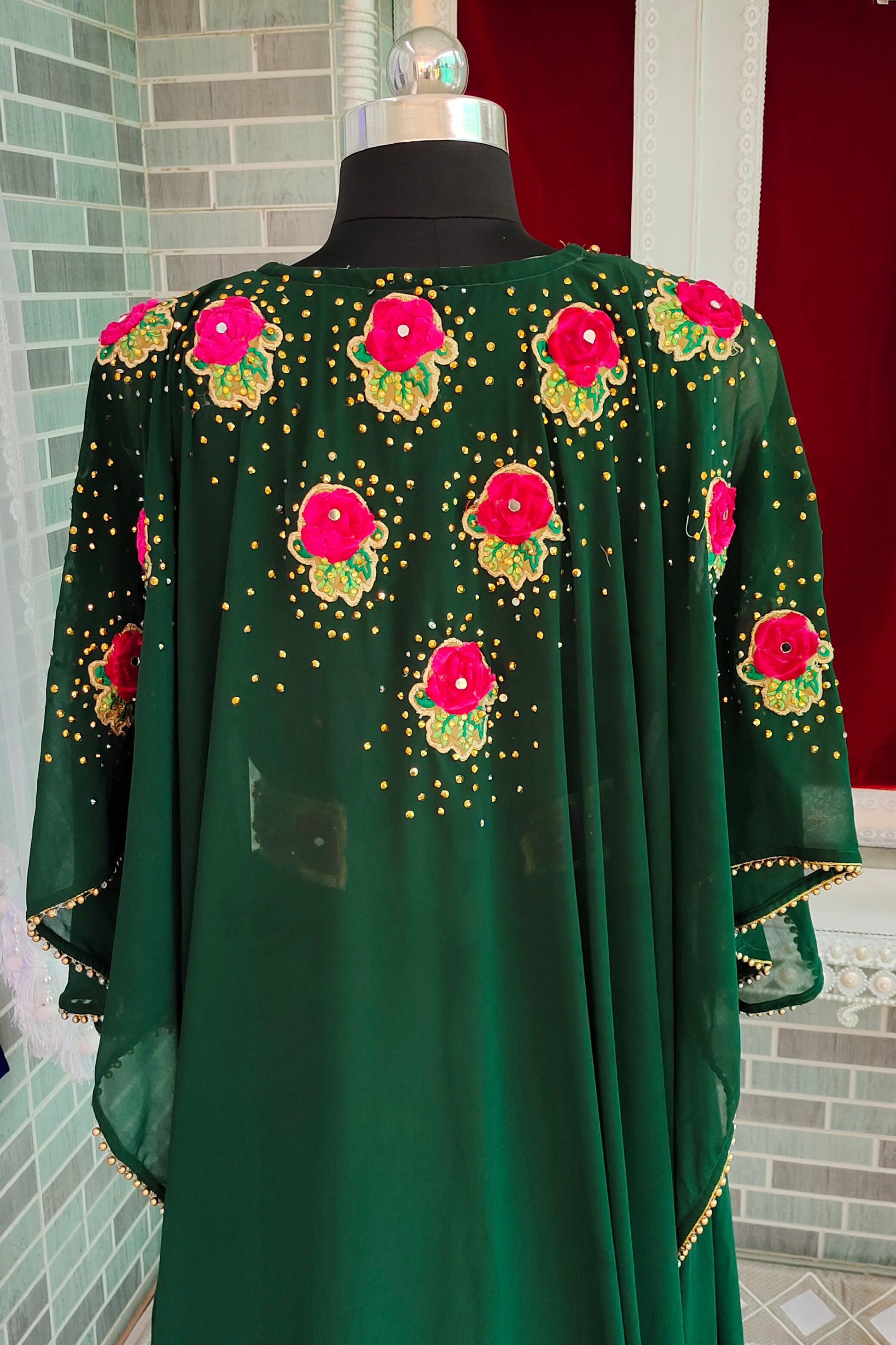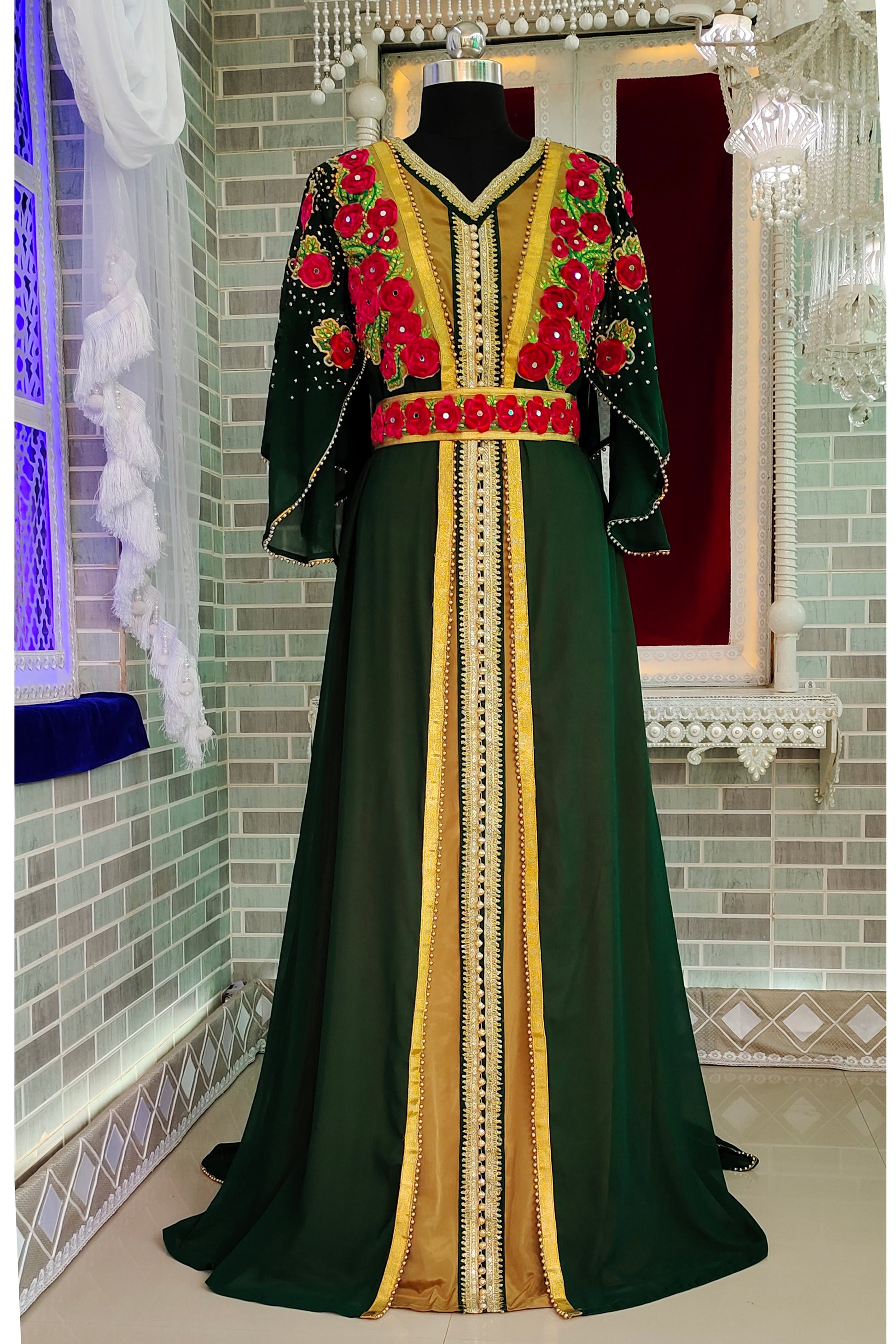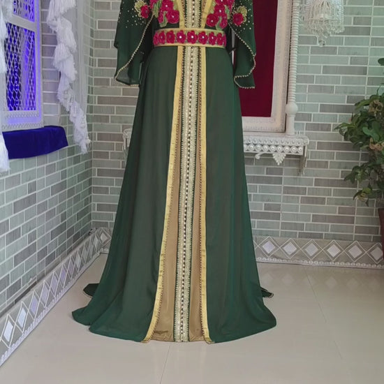 Dark Green Unique Israeli Designer Moroccan Kaftan / Arabic Takchita Maxi Dress / Islamic Embroidery Party Wear Wedding Kaftan