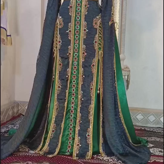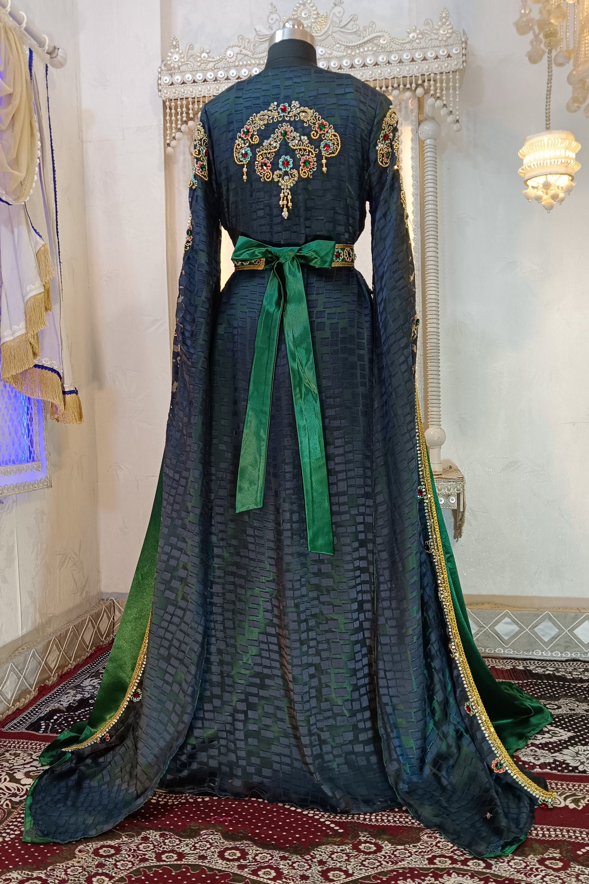 DarkGrey and BottleGreen Islamic Wedding Moroccan Kaftan
