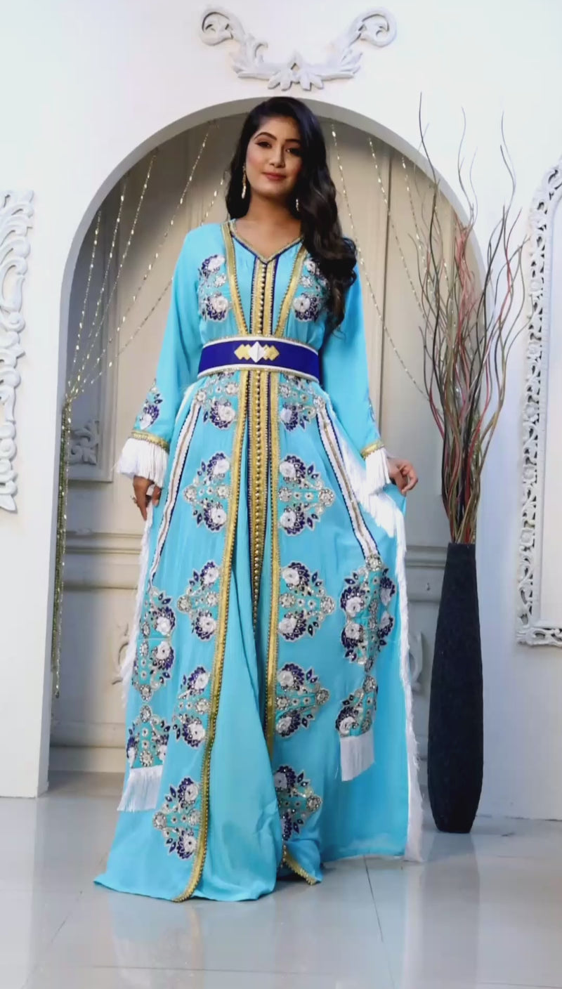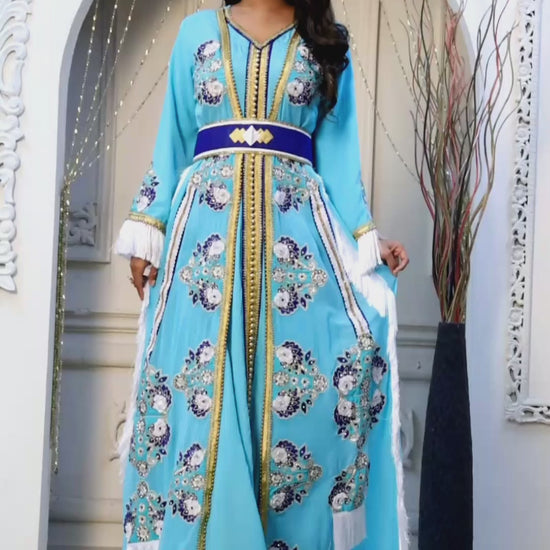 Dubai Moroccan Kaftan Mint Green Islamic Designer Kaftan / Arabic Maxi Dress / Israeli Embroidery Takchita Party Wear Wedding Kaftan
