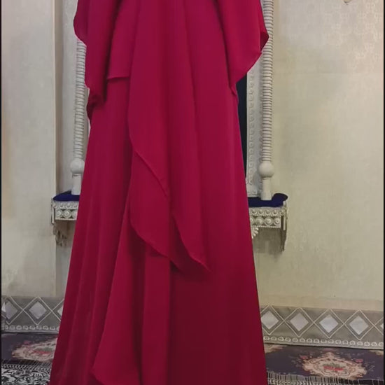 Maroon Designer Islamic Kaftan Israeli Wedding Takchita Kaftan
