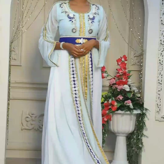 Mint Green Designer Israeli Royal Embroidered Stylish Farasha Takchita Kaftan Wedding Clothes For Women