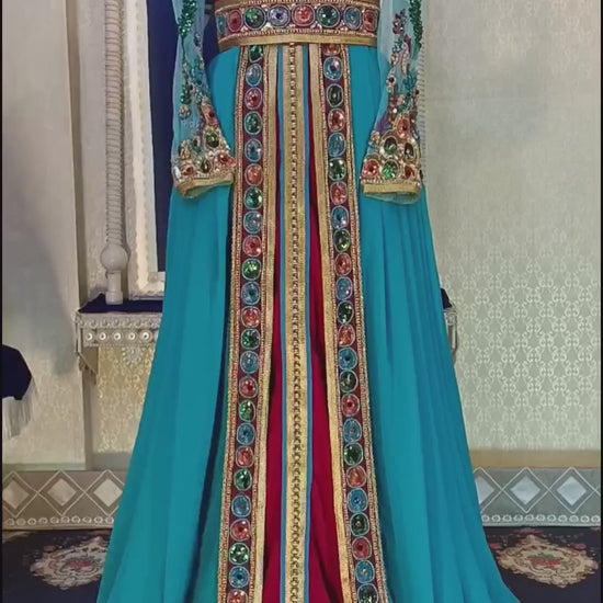 Pink and Firozi Wedding Moroccan Kaftan