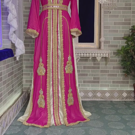Pink and Ivory Color Designer Islamic Fancy Moroccan Arabic Womens Takchita African Kaftan Dubai Wedding Takchita Embroidery Caftan