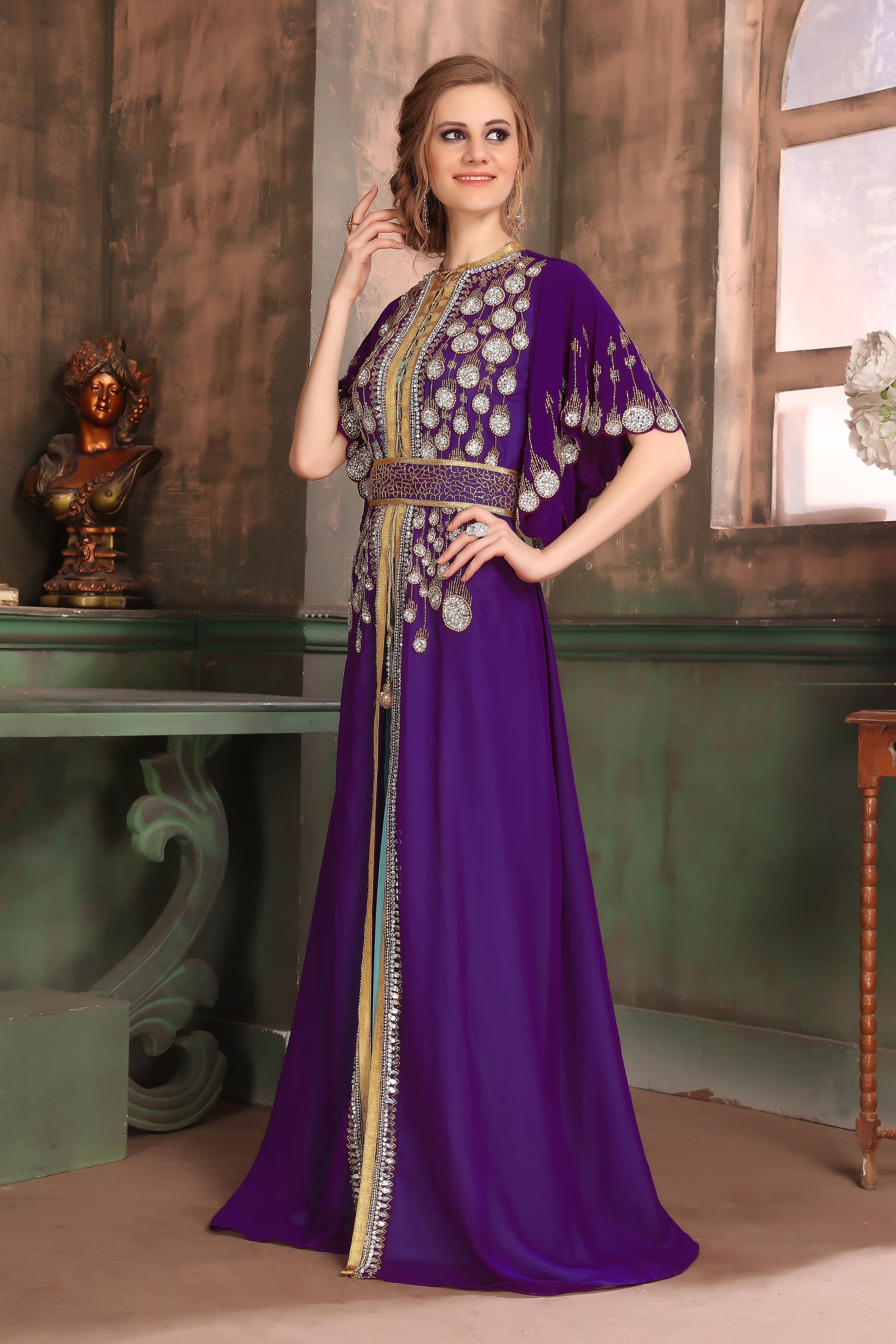 Purple and Blue Color Israeli Kaftan