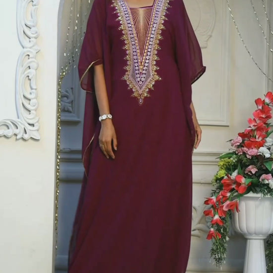 Violet Color Designer Embroidery Clothes For Women New Designer Stylish Israelite Takchita Kaftan Arabic Maxi Dubai Stayle Kaftan
