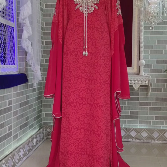 Red Designer Islamic Free Size Hand Beaded Dubai Kaftan