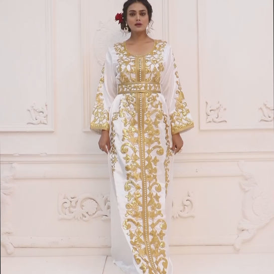 White and Gold Moroccan Clothes For Women New Designer Stylish Israelite Takchita Kaftan