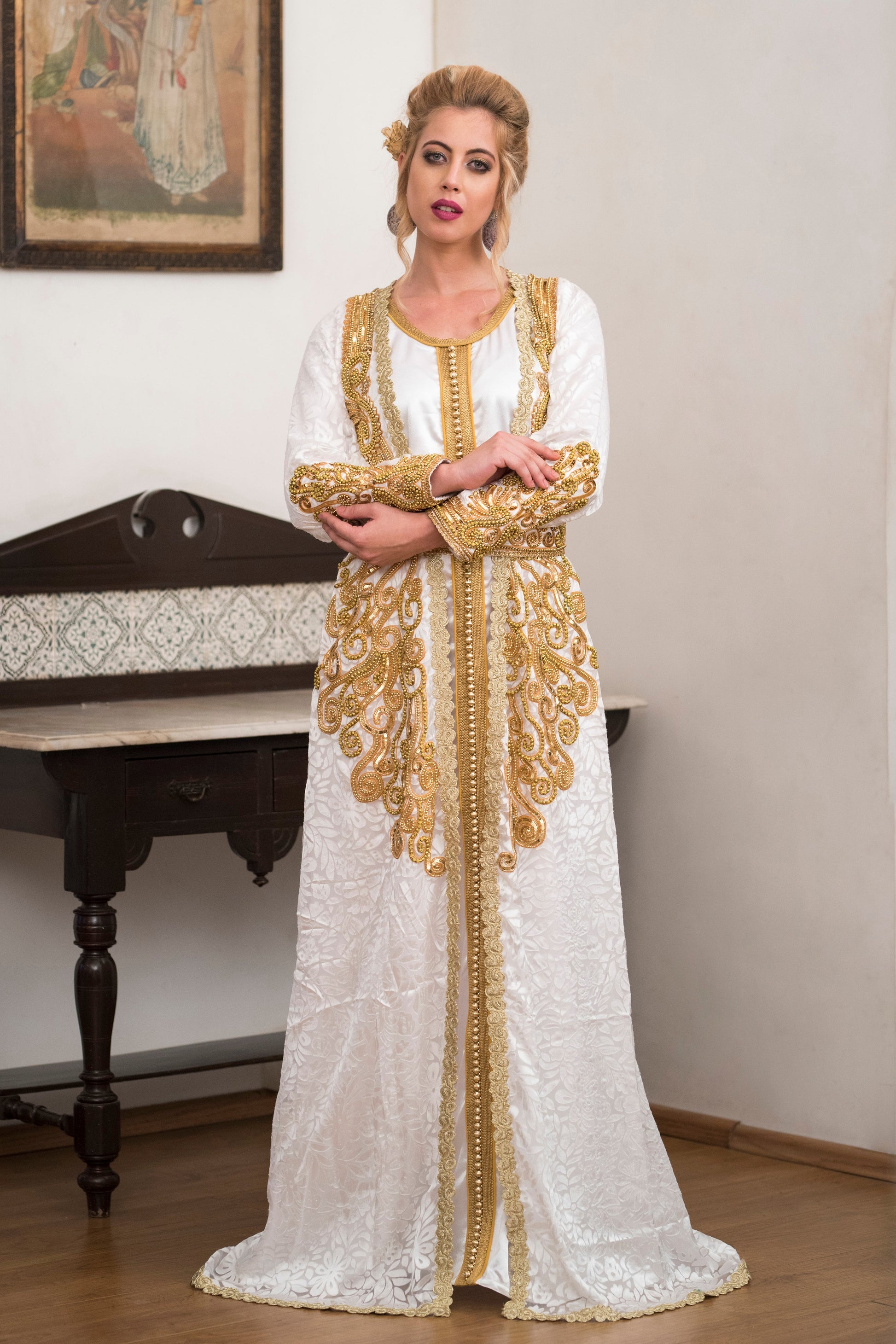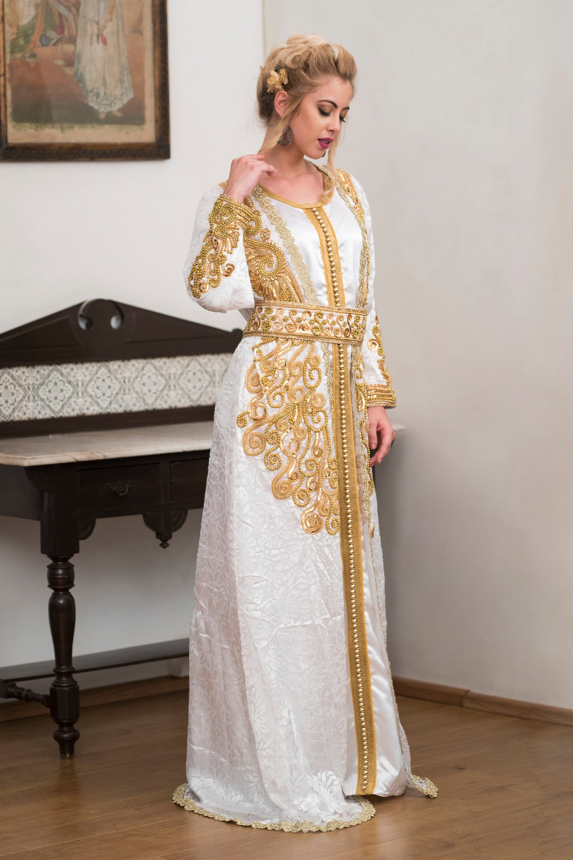 This White Party Wear Moroccan Kaftan is the perfect choice for any celebration. The clean, white color gives it a fresh and stylish look, while the soft fabric keeps you comfortable all day or night. Whether you're attending a party, wedding, or special event, this kaftan will have you feeling confident and chic. The unique Moroccan design adds a touch of culture to your outfit. It’s a must-have piece to make any occasion feel even more special.